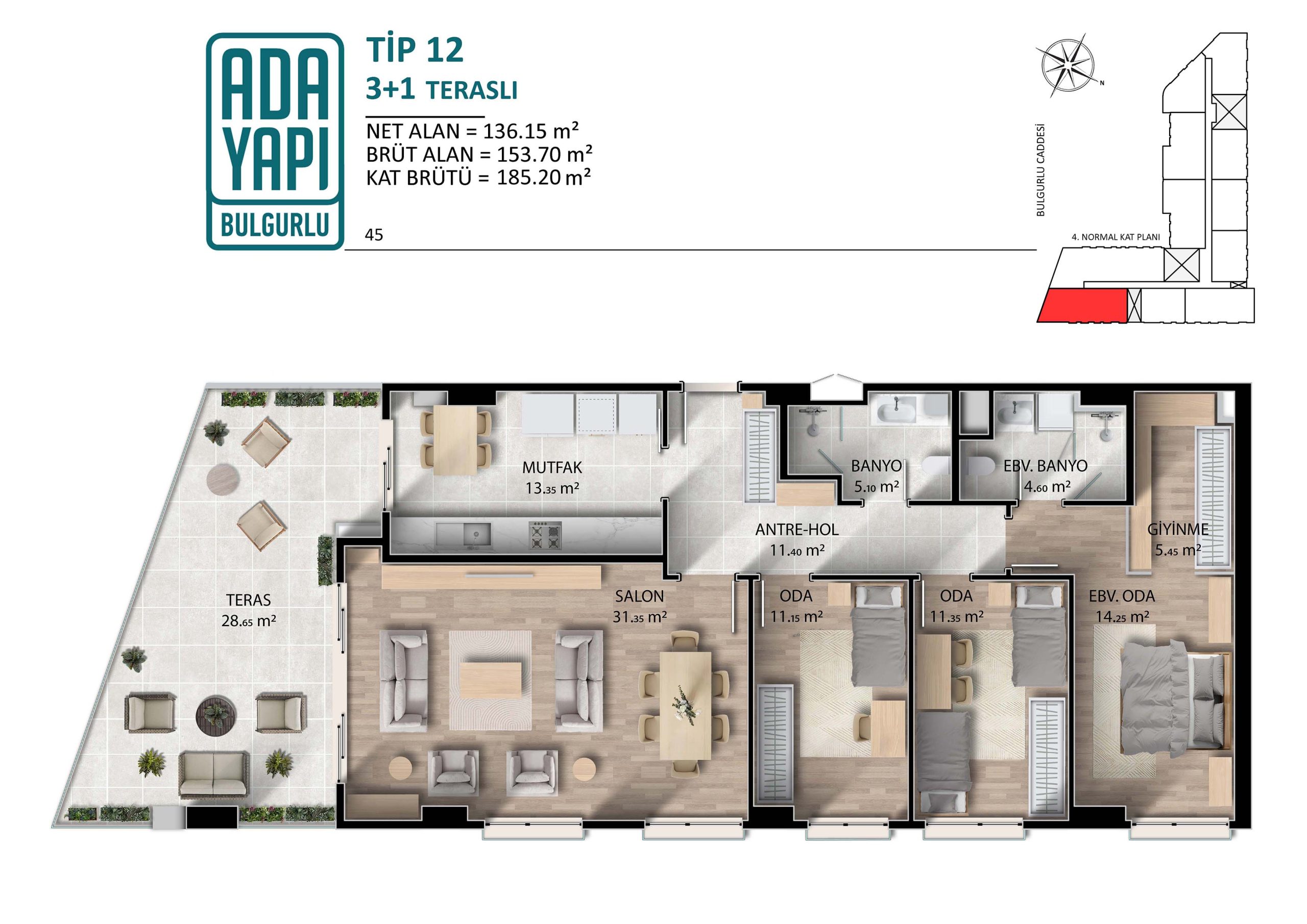 3+1 Teraslı