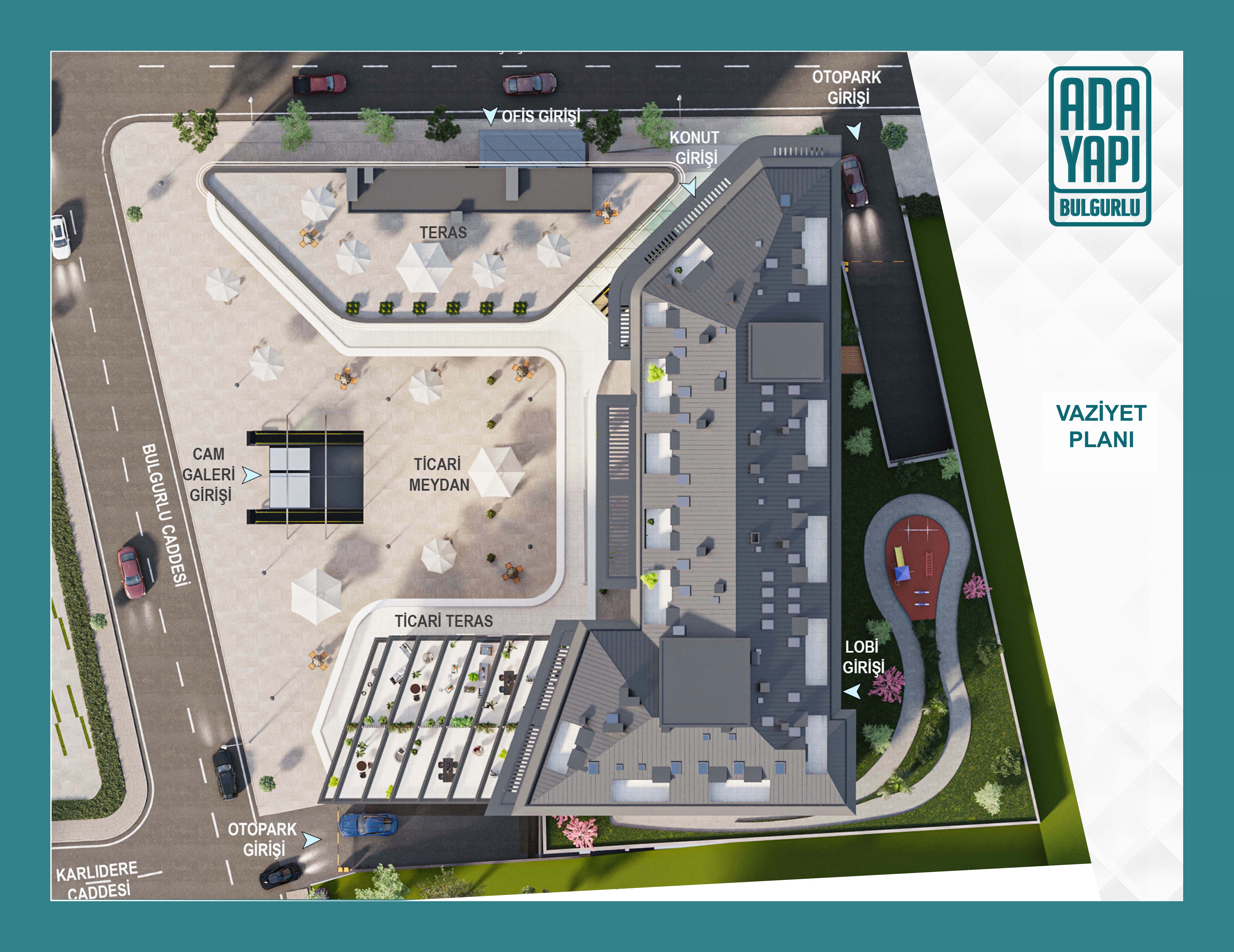 Estetik mimari, fonksiyonel yerleşim ve doğayla bütünleşen sosyal alanlar Ada Yapı Bulgurlu’nun her detayı özenle tasarlanmış blok yerleşimini, yeşil alan kurgusunu ve proje detaylarını keşfedin.